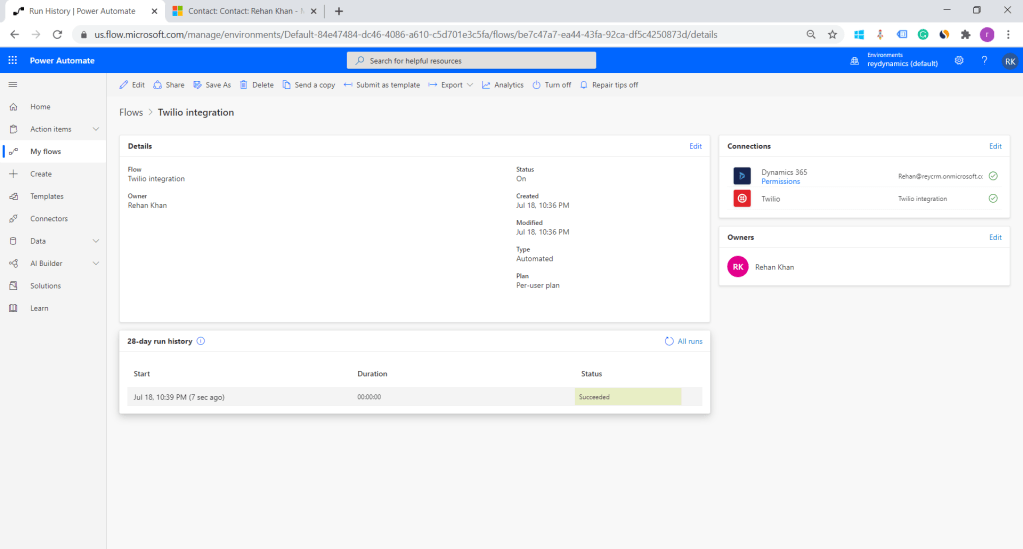 As we can see custom API responded successfully with the contact ID created in CRM.