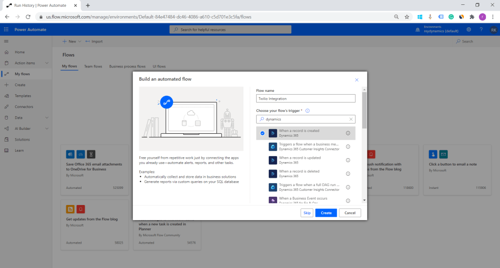 | Async Only | When you want to allow other developers to detect when this operation occurs, but you do not want them to be able to cancel the operation or customize the behavior of the operation. Other developers can register asynchronous steps to detect that this operation occurred and respond to it after it has been completed. This is the option recommended if you are using the business events pattern. A business event will create a trigger in Power Automate to you can use when this event occurs. More information: Microsoft Dataverse business events |